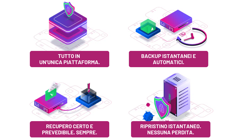 L’insieme di tecnologie di protezione dati presenti nelle soluzioni Syneto garantisce la ricerca attiva e la auto-rigenerazione dei dati corrotti.